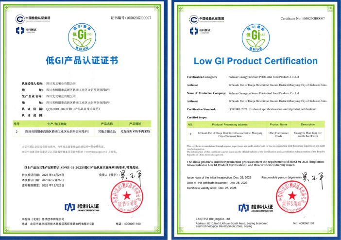 光友32年打造薯類(lèi)方便主食健康品質(zhì):光友薯業(yè)32年來(lái),專(zhuān)做健康薯業(yè),在中國乃至世界把紅薯、馬鈴薯做成一大健康主食產(chǎn)業(yè)。光友薯業(yè)歷經(jīng)32年來(lái),光友綿陽(yáng)米粉低GI健康方便主食發(fā)布,是繼光友酸辣粉低GI健康方便主食后,又一個(gè)健康爆款產(chǎn)品上市。光友低GI健康薯類(lèi)方便主食是經(jīng)光友薯業(yè)技術(shù)創(chuàng )新,經(jīng)國家權威檢測機構營(yíng)養成分檢測和臨床試驗,取得低GI食品報告,由中國權威認證機構中檢科檢測后,為光友薯業(yè)頒發(fā)了光友綿陽(yáng)米粉低GI健康方便主食認證證書(shū),這是線(xiàn)上線(xiàn)下各位領(lǐng)導、嘉賓、朋友,關(guān)心支持光友32年來(lái)共同取得的成果!