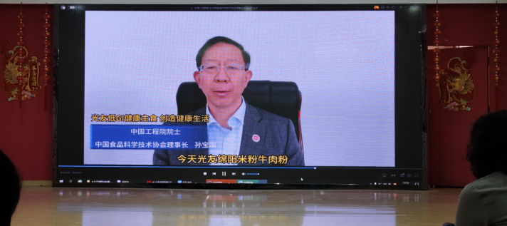 中國工程院院士、中國食品科學(xué)技術(shù)協(xié)會(huì )理事長(cháng)孫寶國發(fā)來(lái)視頻祝賀《光友低GI健康主食 創(chuàng )造健康生活》:“2023年6月我和其他食品科學(xué)家一起應邀到光友薯業(yè)參觀(guān)考察及成果評價(jià),看見(jiàn)光友薯業(yè)32年專(zhuān)注薯類(lèi)健康方便主食產(chǎn)業(yè),我們都很感動(dòng)。光友薯類(lèi)方便米粉是由鄒光友為課題負責人,研發(fā)完成國家十三五薯類(lèi)方便主食中的一項重大成果,我多次組織技術(shù)成果評價(jià),均評價(jià)為國際領(lǐng)先水平。今天,光友綿陽(yáng)米粉牛肉米粉獲得低GI健康食品認證,并召開(kāi)新聞發(fā)布會(huì )向全球推廣,這是食品行業(yè)的一大喜訊,向光友薯業(yè)表示祝賀!”。