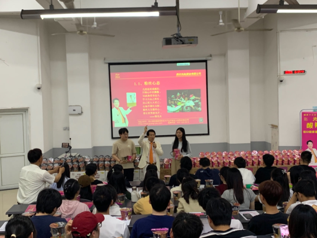 中國食品產(chǎn)教融合共同體副理事長(cháng)、中國食品科學(xué)技術(shù)學(xué)會(huì )理事、方便粉絲方便米粉發(fā)明人、方便粉絲專(zhuān)家、光友薯業(yè)董事長(cháng)鄒光友全國高校第170場(chǎng)巡回演講——《粉絲讓人生更精彩》在四川旅游學(xué)院食品學(xué)院揭開(kāi)序幕。