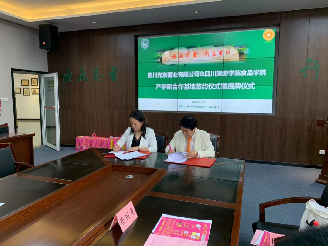 演講完成后,四川光友薯業(yè)與四川旅游學(xué)院食品學(xué)院產(chǎn)學(xué)研合作基地簽約儀式暨授牌儀式正式啟動(dòng)。